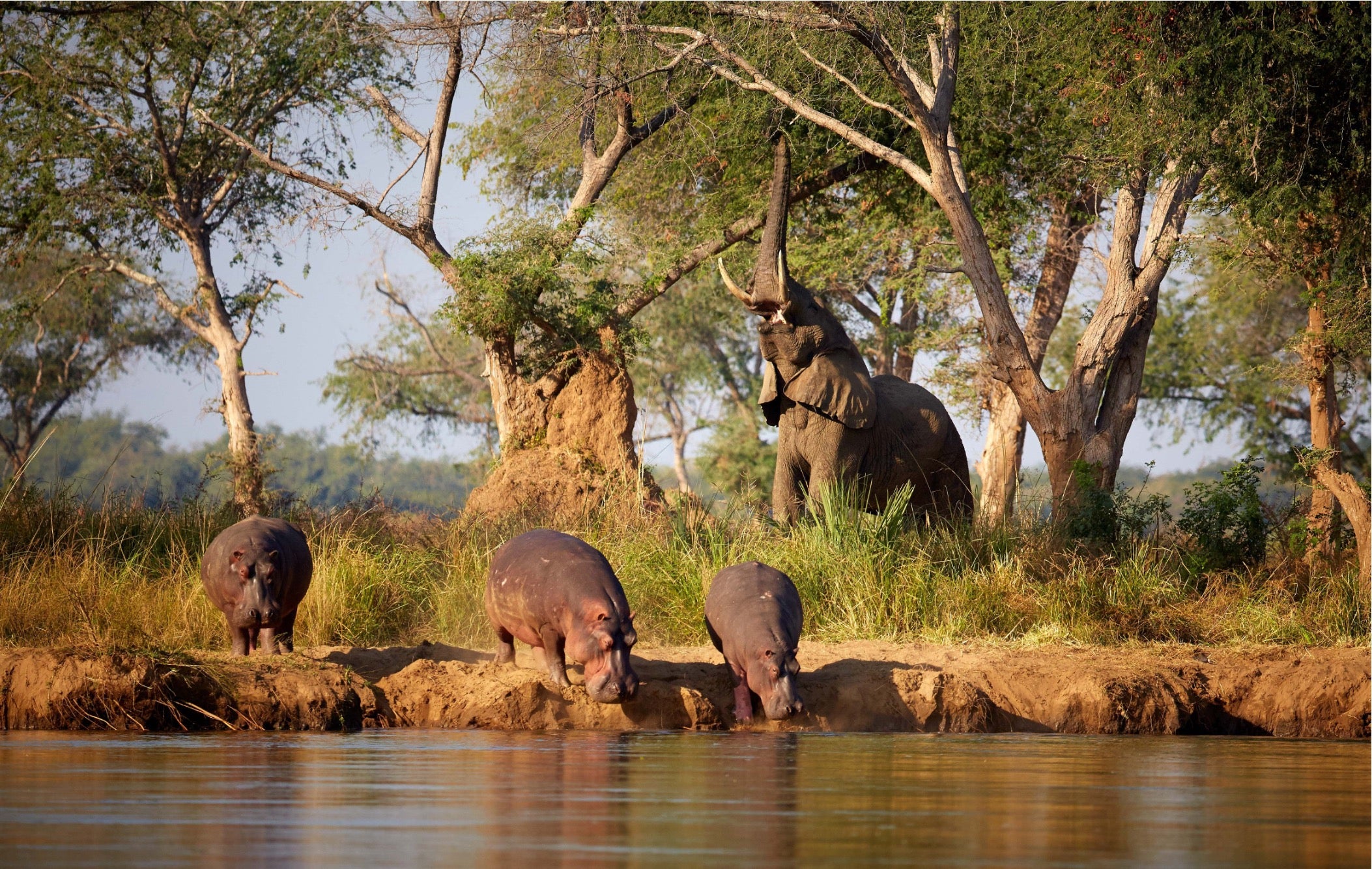 South Luangwa National Park is what I refer to as ‘off-the beaten track’. This is truly untouched Africa. This is where we came up close & personal with a lioness who casually walked right past our group as we enjoyed sundowners on the plains. Here you will find amazing leopard encounters as well as the rare Thornicroft Giraffe.One of my most spectacular memories on safari was in the Lower Zambezi National Park. A big game sanctuary where wildlife concentrates along the winding river. It is here we sat with our feet in the water, on a shallow sandbank whilst enjoying lunch & good company – all under the close eye of inquisitive hippos snorting in the water surrounding us.